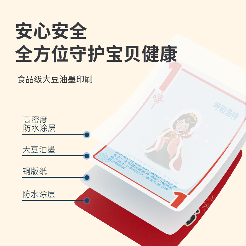 在《山河之旅新春版》这个游戏里,我们选取了其中的49座最具代表性的城市,每座城市都有自己的城市标志,有着自己的故事。将“北京”作为起点,选择三座目标的旅游城市,为自己设计规划最优路径,使用你手上的旅行专用票,尽快完成你的山河之旅。在普通版本基础上,产品增加了新春元素及棋子叠放规则。