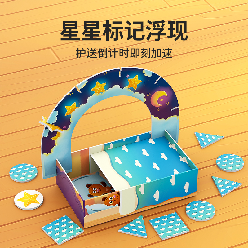 以“玩具趁小主人睡着偷偷逃跑”为故事,小朋友化身玩具管理员,要在星星布满夜空前,把所有玩具送回对应盒子——代入感超强,娃超爱!